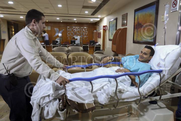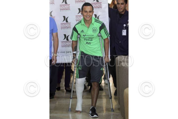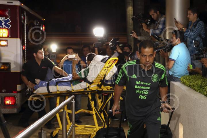 GUADALAJARA, JALISCO, 01JUNIO2014.- Esta madrugada el medio campista del equipo del León y seleccionado Mexicano Luis Montes, arribo al Hospital Country 2000, donde fue intervenido quirúrgicamente tras la lesión que sufrió en el juego de ayer en Dallas Texas frente a la selección de Ecuador. FOTO: CUARTOSCURO.COM