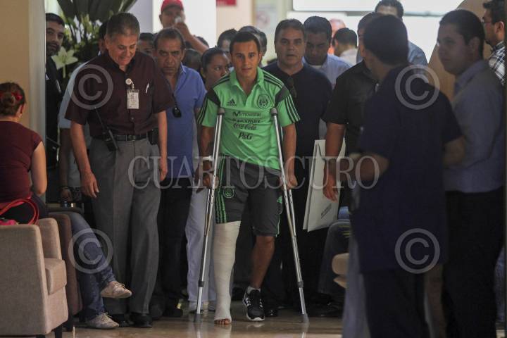 GUADALAJARA, JALISCO, 04JUNIO2014.- Luis Montes, mediocampista de la Selección Mexicana, fue dado de alta al medio día y abandonó el hospital en donde permanecía internado desde la madrugada del domingo pasado cuando fue intervenido por una lesión en la rodilla derecha, misma que sufrió en el encuentro amistoso en Dallas contra la selección ecuatoriana. FOTO: FERNANDO CARRANZA /CUARTOSCURO.COM