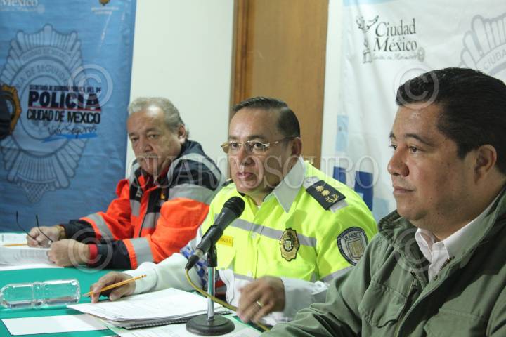 MÉXICO, D.F., 10AGOSTO2012.- Luis Rosales Gamboa, subsecretario de Seguridad Pública acompañado de Sergio Peñuñuri, subsecretario de Protección Civil y Hector Antuñano, subsecretario de programas delegacionales, anunciaron en conferencia anunciaron que 2 mil 400 elementos de tránsito y preventivos, brindaran la seguridad en la zona de ángel de la independecia previo al encuentro de la selección mexicana de fútbol. FOTO: SAÚL LÓPEZ /CUARTOSCURO.COM