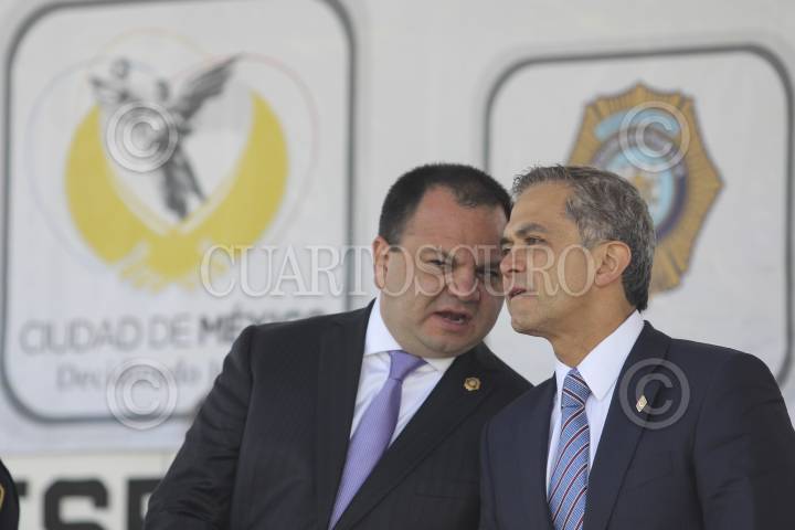 MÉXICO, D.F., 22MAYO2014.- El Primer Superintendente, Luis Rosales Gamboa, Subsecretario de Operación Policial junto a Jesus Rodriguez Almeida, Secretario de Seguridad Pública durante la firma de convenio con el Instituto de las Mujeres del Distrito Federal FOTO: ENRIQUE ORDÓÑEZ /CUARTOSCURO.COM