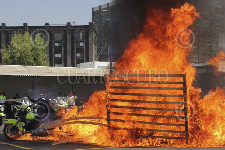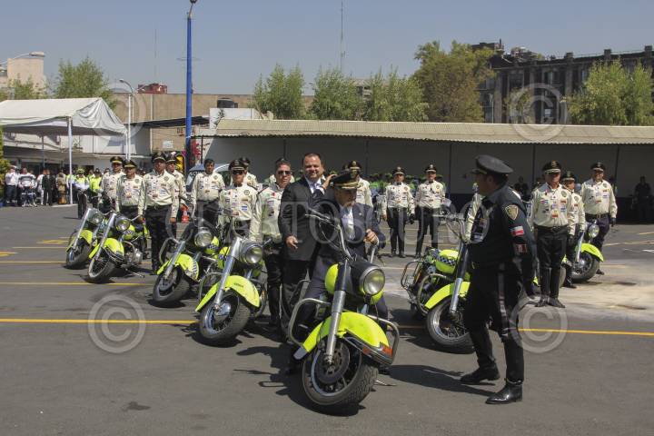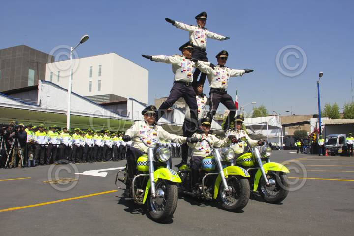 MÉXICO, DF., 03MARZO2013.- Policias del escuadron de motociclistas realizaron una demostración durante la ceremonia de entrega de grados a seis nuevos directores de la Policía de Tránsito y anuncio la modernización de los semáforos, monitoreo de velocidades y la aplicación de infracciones como parte de su programa para mejorar la movilidad en la Ciudad de México. FOTO: SAÚL LÓPEZ /CURTOSCURO.COM
