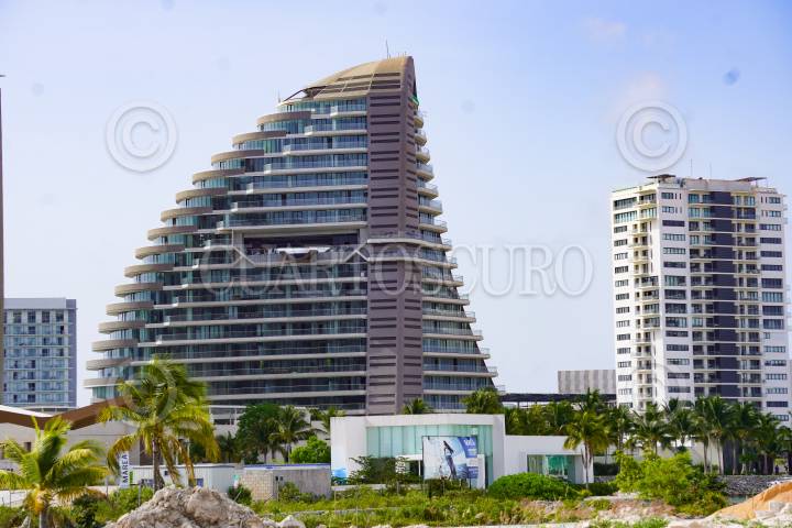Contraste de edificios y departamentos de lujo en la avenida Bonampak así como en Puerto Cancún donde esta el top cinco de los desarrollos mas lujosos de la ciudad cuenta con una marina y canales de navegación y un campo de golf, centro comercial entre otras amenidades.