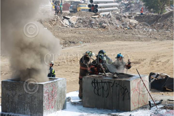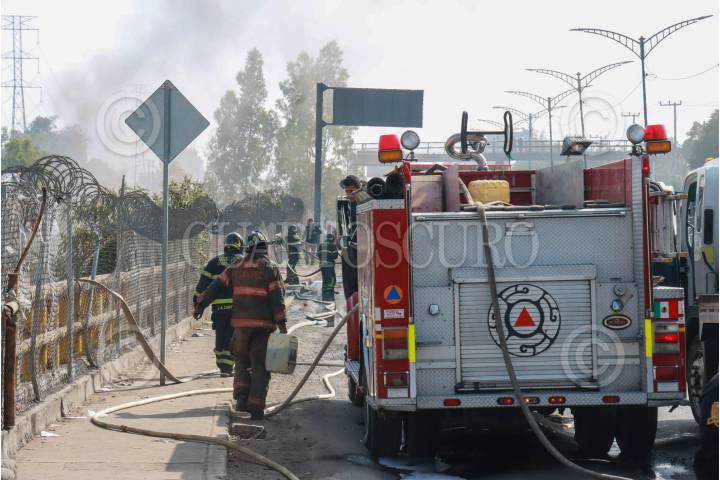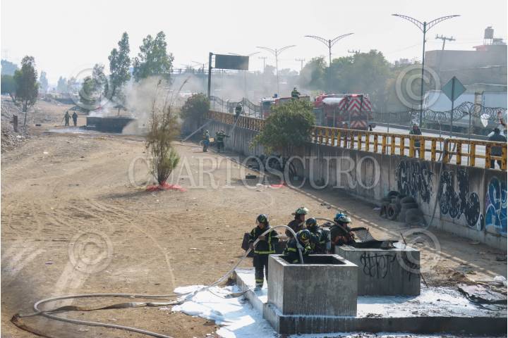 ECATEPEC, ESTADO DE MÉXICO, 03ENERO2025.- Bomberos trabajaron al menos un par de horas para controlar varios incendios en los respiradores del Río de los Remedios y avenida León de los Aldama, entre lla Alcaldía Gustavo A Madero y Ecatepec. FOTO: ROGELIO MORALES/CUARTOSCURO.COM