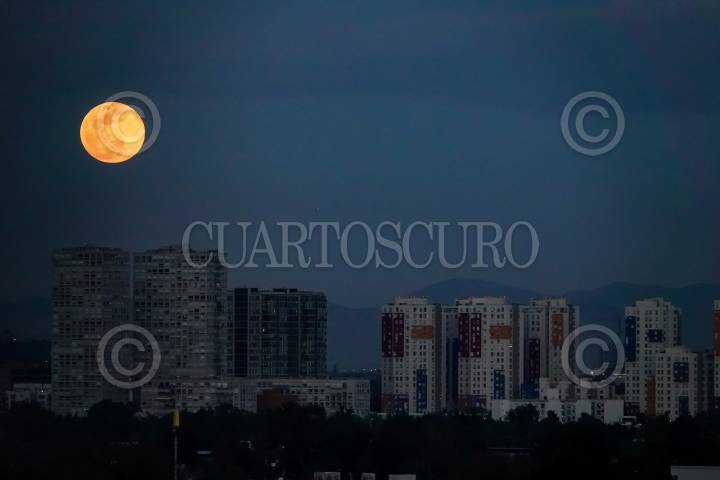 CUERNAVACA, MORELOS, 15NOVIEMBRE2024.- La luna llena de este mes emerge luminosa y mas grande de lo habitual en el cielo de la capital de Morelos. La luna de esta noche es una Superluna, porque ocurre cerca del perigeo (punto más cercano a la tierra en la orbita del satélite) se vera un 7% mas grande y 16% mas brillante. Luna de castor es uno de los nombres como se conoce a la luna llena de noviembre, esto porque, según las tribus nativas americanas, los castores se preparan para el frío, construyendo presas y abasteciendo de alimento sus madrigueras para el invierno que se aproxima. FOTO: MARGARITO PÉREZ RETANA/CUARTOSCURO.COM