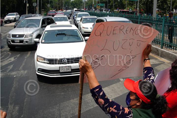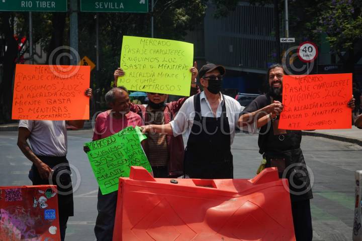 CIUDAD DE MÉXICO, 19ABRIL2024.- Locatarios del Mercado Bajo Puente de Chapultepec bloquearon Paseo de la Reforma a la altura de la Estela de la Luz, para exigir a las autoridades el suministro de luz eléctrica en sus comercios. FOTOS: ROGELIO MORALES /CUARTOSCURO.COM