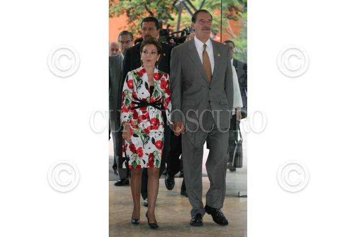 México, D.F., 23AGOSTO2004.- Vicente Fox Quesada, presidente de la República y Marta Sahagún, primera dama, asistieron a la sesión inaugural de la Segunda Reunión Interamericana de Ministros y Máximas Autoridades de la Cultura, que se realizó en el Centro Nacional de las Artes. FOTO: Moisés Pablo/CUARTOSCURO.COM