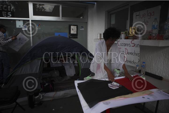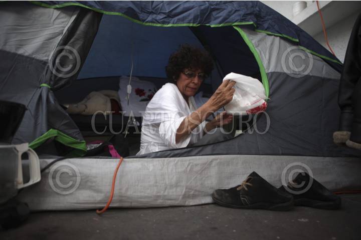 MORELIA, MICHOACÁN, 09DICIEMBRE2014.- La médico forense Graciela Delgado, quién amagó el pasado domingo con suturarse la boca si el día de hoy no era resuelto su caso, desistió y concluyó huelga de hambre que mantuvo durante 19 días a las afueras de la Comisión Estatal de los Derechos Humanos (CEDH). La ex trabajadora de la Procuraduría Estatal de Justicia del Estado (PGJE), se encuentra cerca de darle fin a un litigio de casi 4 años, tras llegar a un arreglo monetario. FOTO: ALAN ORTEGA /CUARTOSCURO.COM