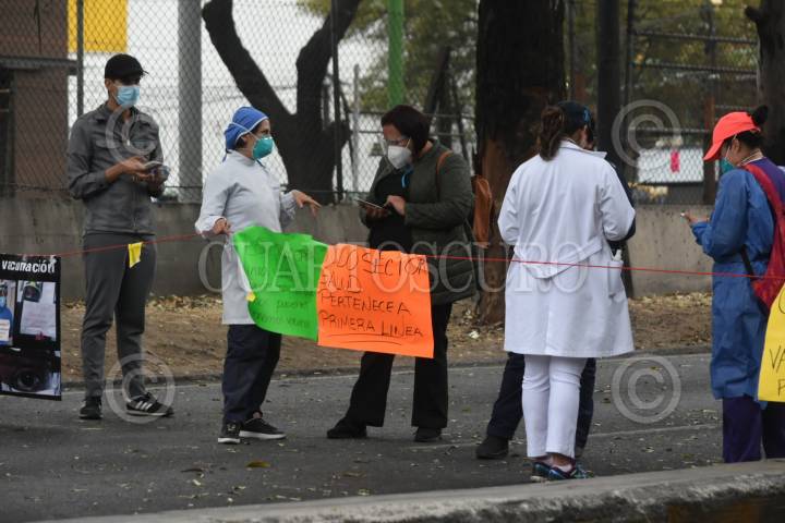 Personal médico privado se manifestó a las afueras de Palacio Nacional para exigir ser inmunizados ante la Covid-19.