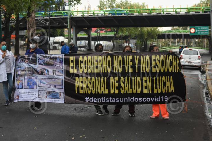 Médicos y dentistas privados bloquearon por varias horas avenida Tlalpan para exigir ser vacunados contra el Covid-19.