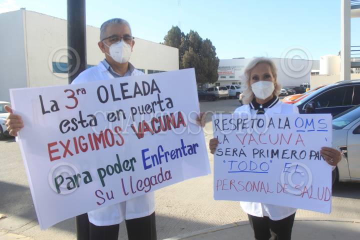 Personal médico privado de Ciudad Juárez, Chihuahua, se manifestaron en exigencia para recibir las vacuna contra la Covid-19.