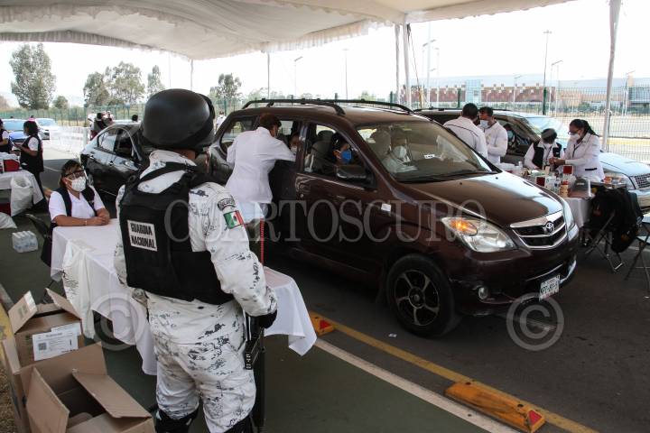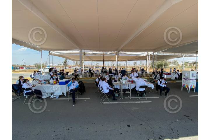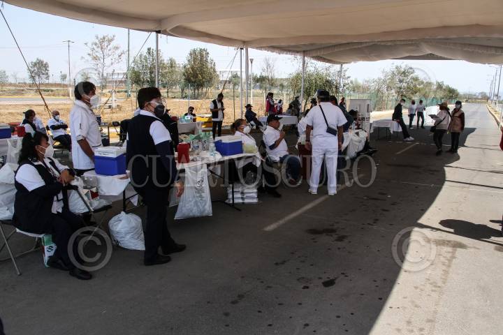 Dentro del recinto un hombre fue atendido por personal médico, momentos antes de ser vacunado. Durante la documentación gráfica de este suceso, Servidores de la Nación y elementos de la Policía Estatal intentaron impedir el registro y exigían borrar el material fotográfico.