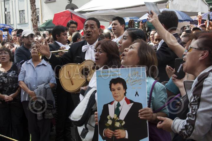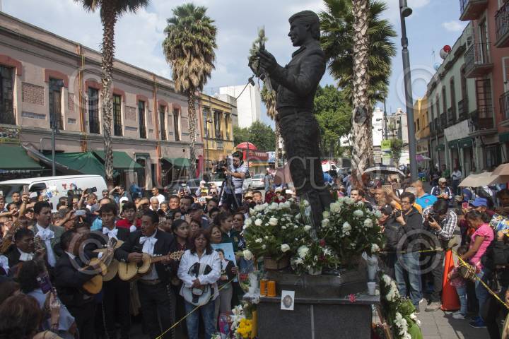 CIUDAD DE MÉXICO, 29AGOSTO2016.- Fans de Juan Gabriel se reunieron en la estatua alusiva al “Divo de Juárez”, ubicada en la Plaza de Garibaldi, para recordar al cantautor mexicano, fallecido el día de ayer, en Santa Mónica, California. Los asistentes colocaron veladoras, flores y cantaron acompañados de un mariachi. FOTO: GALO CAÑAS /CUARTOSCURO.COM