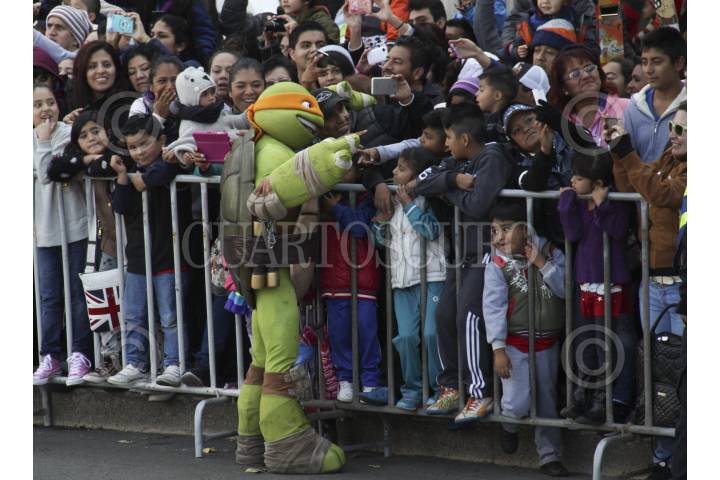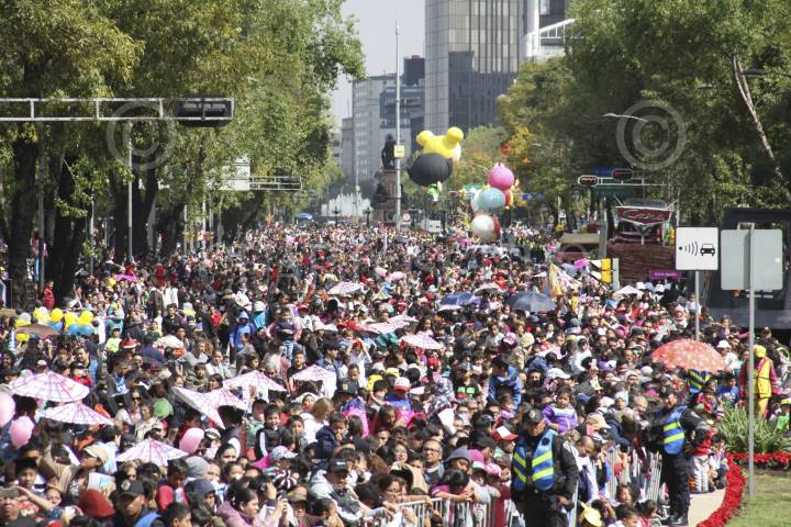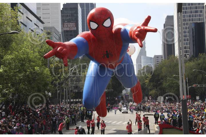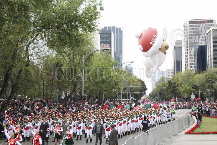 CIUDAD DE MÉXICO, 26NOVIEMBRE2016.- Sobre Paseo de la Reforma se realizó un desfile navideño, organizado por una tienda departamental, en el cual participaron bandas de guerra, bailarines, actores caracterizados con temáticas infantiles, y globos aerostáticos. Decenas de niños se dieron cita al encuentro que partió de la Estela de Luz a la glorieta de Colón. FOTO: ANTONIO CRUZ /CUARTOSCURO.COM