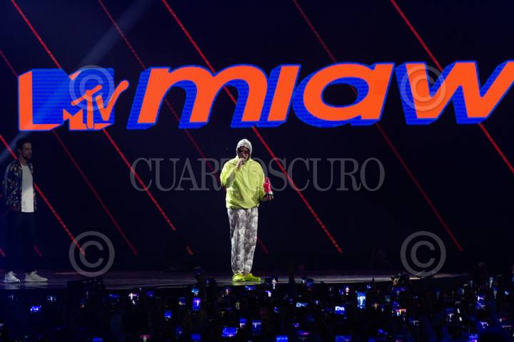 CIUDAD DE MÉXICO, 21JUNIO2019.- Bad Bunny durante los Premios MTV Miaw 2019, en el Palacio de los Deportes. FOTO: ROGELIO MORALES /CUARTOSCURO.COM