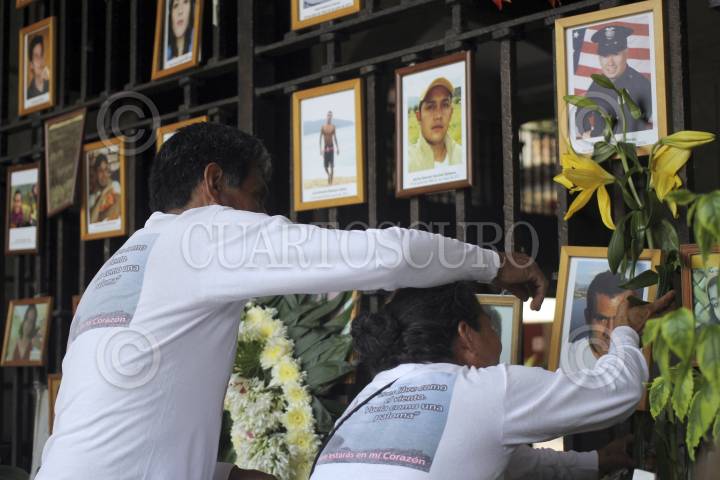 CUERNAVACA, MORELOS, 10MAYO2015.- Madres de personas desaparecidos por la violencia e inseguridad registrados en el país, marcharon del Calvario al altar de Víctimas del Palacio de Gobierno, donde llevaron fotografías de sus hijos, flores y gritaron consignas de justicia. FOTO: PATRICIA MORALES /CUARTOSCURO.COM