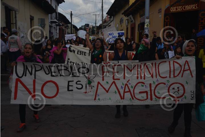 SAN CRISTOBAL DE LAS CASAS, CHIAPAS, 16AGOSTO2019.- Mujeres de diferentes regiones del mundo recorrieron la calle Real de Guadalupe hasta llegar a la plaza de la Paz, donde tomaron la palabra varías compañeras rechazando la violencia que se ejerce a las mujeres, la cual ha provocado en muchos casos, la muerte. La mayoría de los crímenes quedan impunes. FOTO: ISABEL MATEOS /CUARTOSCURO.COM