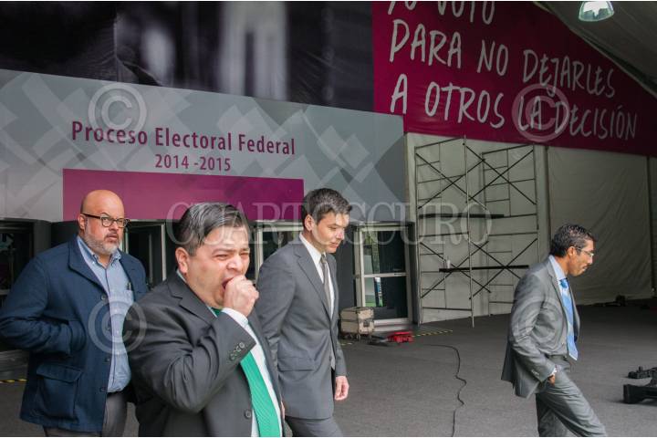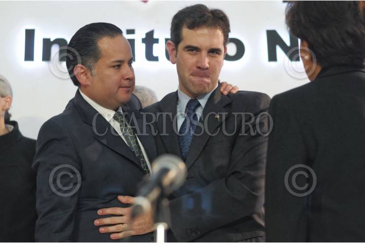 MÉXICO, D.F., 03JUNIO2015.- Santiago Nieto, titular de la Fiscalía Especial para Delitos Electorales de la PGR y Lorenzo Cordova Vianello, consejero presidente del INE, durante la inauguración de la macro sala de prensa, la cual tuvo un costo de 20 millones 337 mil pesos, esto para que periodistas de todo el país den cobertura a las elecciones del próximo domingo desde la sede del INE. FOTO: DIEGO SIMÓN SÁNCHEZ /CUARTOSCURO.COM