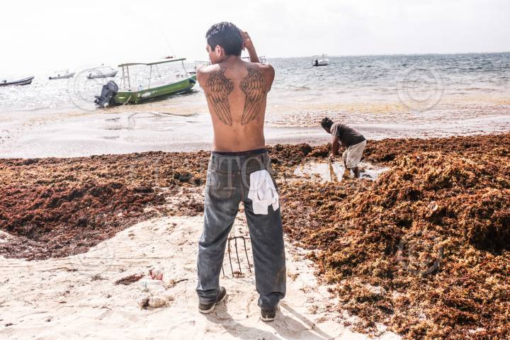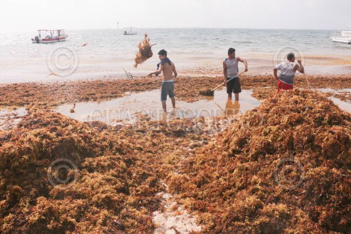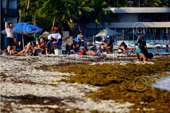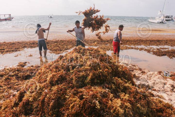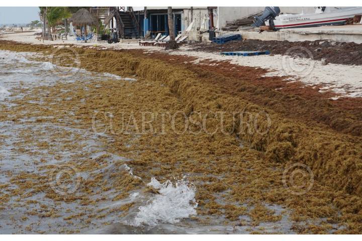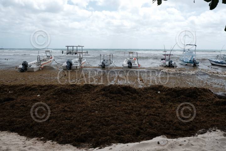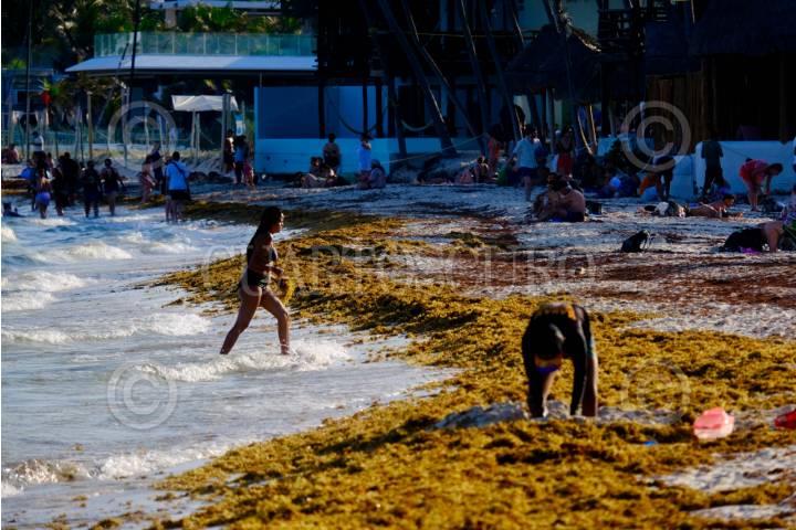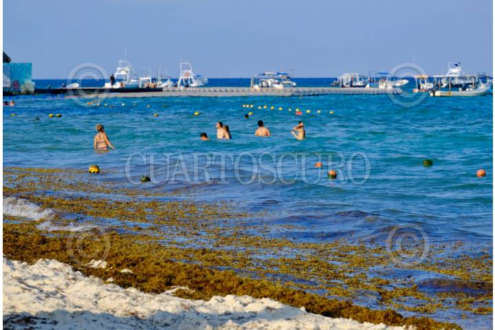 El sargazo a iniciado su invasión en Playa del Carmen, esta macroalga se puede observar desde el muelle Fiscal hasta Playa el Recodo.