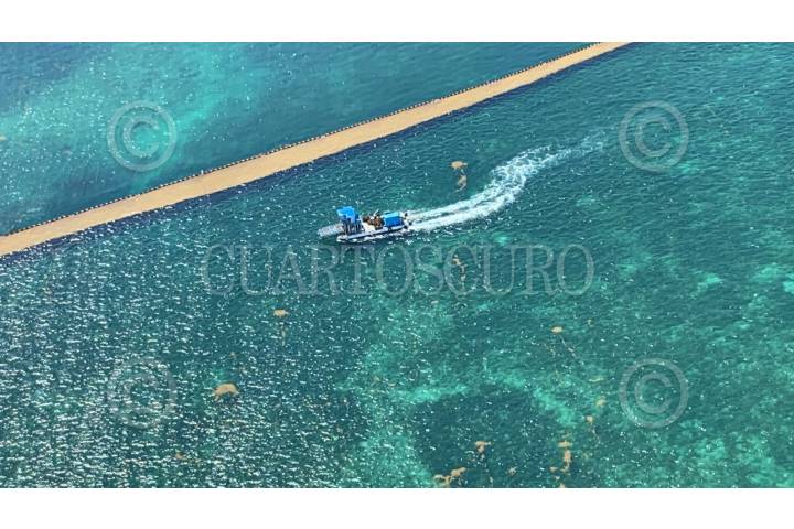 Semar continúa los trabajos de contención de arribo de sargazo a playas de Quintana Roo.