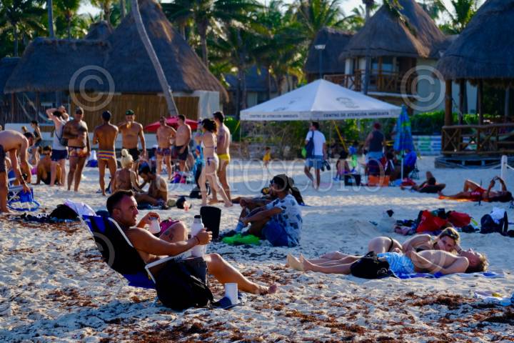 PLAYA DEL CARMEN, QUINTANA ROO, 04MAYO2024.- Aspectos del arribo de sargazo en playas del municipio de Playan del Carmen, el cual luce en menor medida comparado con otros años . FOTO: ELIZABETH RUIZ/CUARTOSCURO.COM