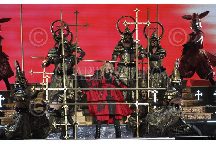 MÉXICO, D.F., 06ENERO2016.- La cantante Madonna ofreció su primer concierto en la ciudad como parte de su gira "Corazón Rebelde", con una retraso de más de una hora la llamada reina del pop salió al escenario interpretando "Iconic", en el Palacio de los Deportes, en donde sus seguidores ya esperaban ansiosos para ver a esta estrella que esta cerca de cumplir seis décadas de vida. FOTO: CUARTOSCURO.COM