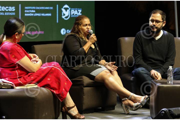 ZACATECAS, ZACATECAS, 27AGOSTO2024.- Como parte de las actividades de la Feria Nacional del Libro en Zacatecas 2024, fue presentado el libro “Madre Buscadora. Crónica de la desesperación” de la autora Ceci Flores. Además de la madre buscadora quien forma parte del colectivo Madres Buscadoras de Sonora, estuvo acompañada de Cristela Trejo y Jairo López, investigadores de la Universidad Autónoma de Zacatecas y miembros del colectivo Sangre de mi Sangre. FOTO: ADOLFO VLADIMIR /CUARTOSCURO.COM