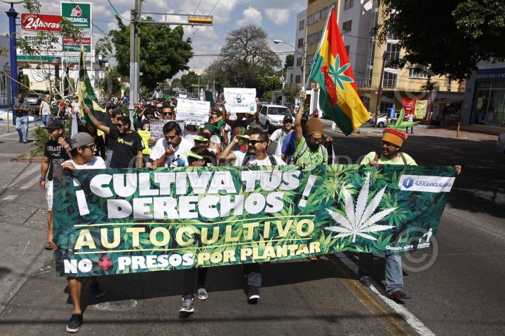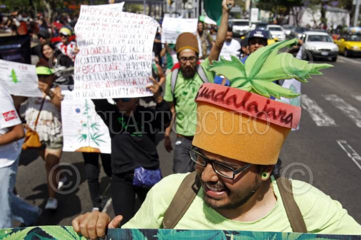 GUADALAJARA, JALISCO, 02MAYO2015.-A favor y a manera de protesta por la legalización de la marihuana en México, decenas de personas marcharon del parque rojo hasta Av. México donde se encuentra el monumento a la madre Patria, dicha marcha fue organizada por el Colectivo 4:20. FOTO: FERNANDO CARRANZA GARCIA / CUARTOSCURO.COM