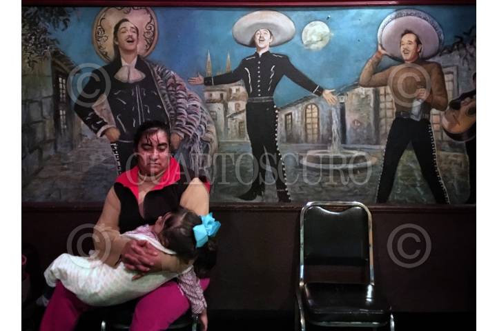 CIUDAD DE MÉXICO, 13DICIEMBRE2018.- Una mujer que vende dulces, comienza a quedarse dormida con su hija en los brazos, a las afueras de un bar en la zona de Garibaldi. FOTO: ANDREA MURCIA /CUARTOSCURO.COM
