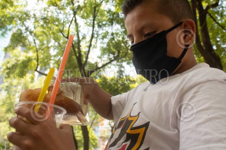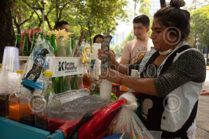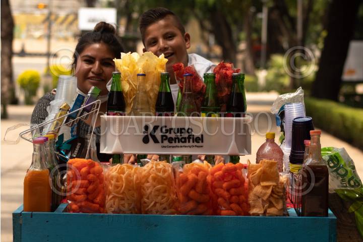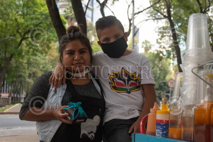 "Venga lo que venga, hay que trabajar" así lo afirma Elodia Perez, madre soltera de 30 años de edad, quien es vendedora ambulante de raspados desde hace 8 meses, luego de dejar de laborar como trabajadora doméstica, debido a que solo los fines de semana podía ver a su hijo, y ante la falta de tiempo no podía asistir a las juntas escolares. Su hermana le sugirió vender raspados, le enseñó a preparar los jarabes y le presto un carrito para salir a vender. Hoy ante la pandemia por COVID-19, y en el día de las madres, Elodia y su hijo salen a vender raspados siguiendo las medidas sanitarias anunciadas por la Secretaria de Salud.
