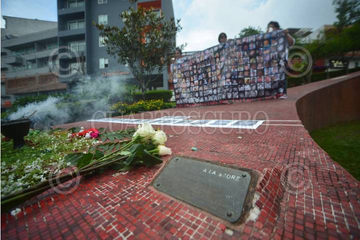 Patricia Cardona Alba, muestra las fotografías de su madre María del Socorro Alba, quien falleció el año pasado sin saber el paradero de su hijo.