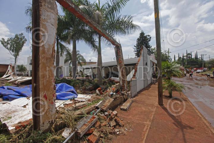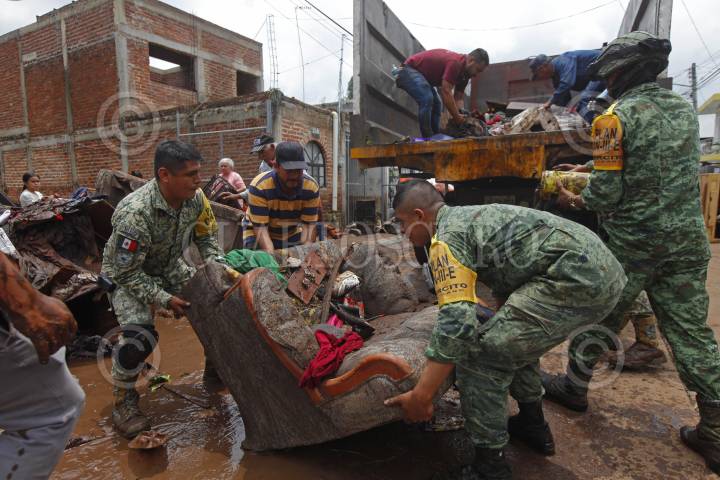 ZAPOTLANEJO, JALISCO, 14AGOSTO2024.- Durante la madrugada de este miércoles se registro una fuerte lluvia que provocó el desbordamiento de varios arroyos en este poblado, el cual dejo como saldo una persona fallecida y alrededor de 60 casas afectadas. Autoridades municipales y del estado trabajan en el saneamiento de la zona. FOTO: FERNANDO CARRANZA GARCIA/CUARTOSCURO.COM