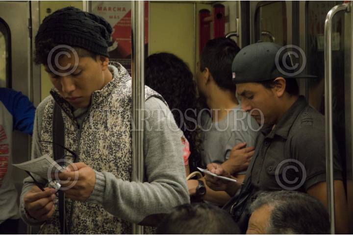 CIUDAD DE MÉXICO, 21JULIO2016.- Jóvenes integrantes del Movimiento de Aspirantes Excluidos de Educación Superior (MAES) realizaron volanteo en diversas estaciones del Sistema de Transporte Colectivo Metro, para informar acerca de dicho movimiento. Asimismo, para invitar a los usuarios a sumarse a la marcha programada para el próximo 25 de julio, que partirá del Monumento a la Revolución hacia Secretaría de Educación Pública (SEP). FOTO: GALO CAÑAS /CUARTOSCURO.COM