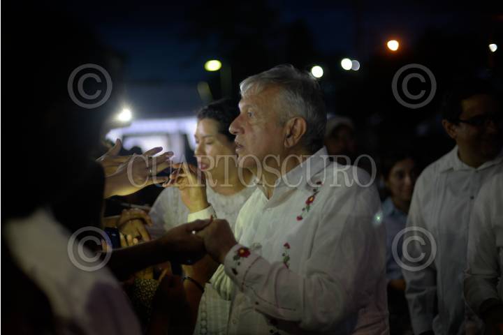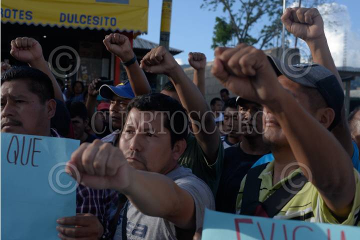 OCOSINGO, CHIAPAS, 06JULIO2019.- El presidente Andres Manuel Lopez Obrador fue recibido en el municipio con una protesta de integrantes de la sección 7 de la Coordinadora Nacional de Trabajadores de la Educación, zona indígena, los maestros manifestaban que no hay medicamentos en el hospital y los doctores no atienden por las mañanas. Después se llevo a cabo dentro del Hospital Rural la presentación del programa Bienestar como parte de la Gira por el estado. FOTO: ISABEL MATEOS /CUARTOSCURO.COM
