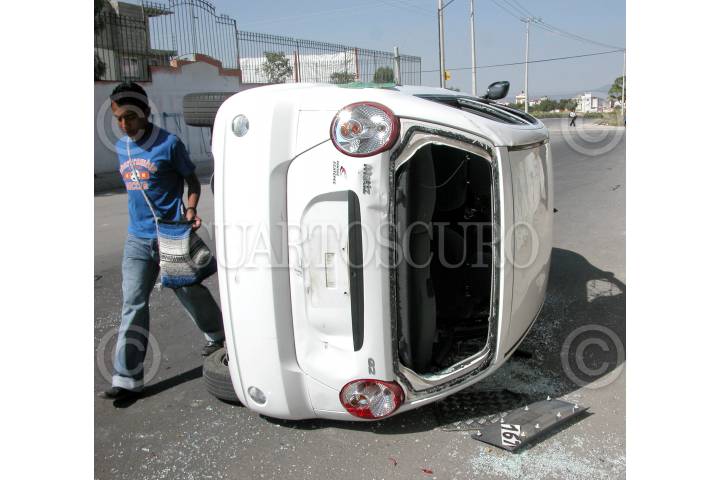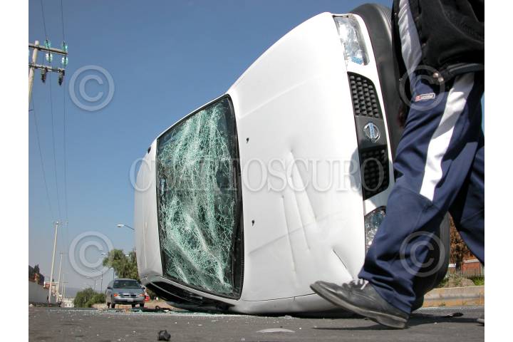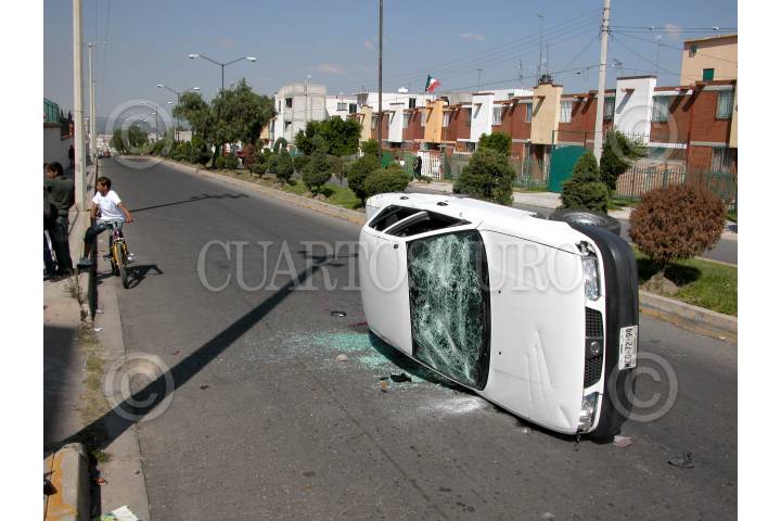TECAMAC, ESTADO DE MÉXICO, 01OCTUBRE2008.- Varios taxis fueron volteados sobre la avenida Olivos, tras suscitarse un enfrentamiento entre transportistas de servicio público de la Ruta 37 y taxistas, luego de que intentarán introducir otras rutas que ofrecieran sus servicios en la colonia Loma Bonita y Francisco Villa del Real. FOTO: JULIETA MORA/CUARTOSCURO.COM