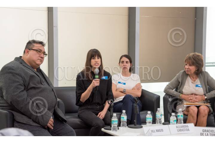 CIUDAD DE MÉXICO, 26ABRIL2017.- Cuauhtémoc Medina, la artista Jill Magid, Alejandra Labastida, y Graciela de la Torre, durante la conferencia de prensa que ofrecieron para hablar sobre la polémica exposición de "Una carta siempre llega a su destino. Los archivos Baragán", en el Museo Universitario de Arte Contemporáneo, la cual se inaugurará el día de mañana 27 abril. FOTO: TERCERO DÍAZ /CUARTOSCURO.COM