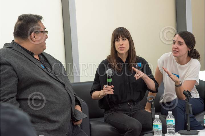 CIUDAD DE MÉXICO, 26ABRIL2017.- Cuauhtémoc Medina, la artista Jill Magid, y Alejandra Labastida, durante la conferencia de prensa que ofrecieron para hablar sobre la polémica exposición de "Una carta siempre llega a su destino. Los archivos Baragán", en el Museo Universitario de Arte Contemporáneo, la cual se inaugurará el día de mañana 27 abril. FOTO: TERCERO DÍAZ /CUARTOSCURO.COM