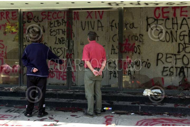 México D.F. 02 FEBRERO 2004.- Maestros de la CNTE se presentaron a las afueras del Auditorio Samano López Mateos, propiedad del SNTE, donde protestaron por la Reforma Estatutaria Magisterial. FOTO: Sandra Perdomo/CUARTOSCURO.COM