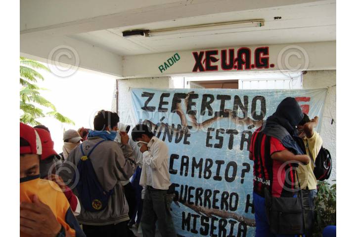 CHILPANCINGO, GUERRERO, 25SEPTIEMBRE2007.- Aspecto de la toma de las instalaciones de "Radio Universidad" por parte de egresados de la normal rural de Ayotzinapa para exigir al secretario de educacion Jose Luis Gonzalez de la Vega Otero y al gobernador del estado Zeferino Torreblanca Galindo la entrega de plazas para maestros rurales. FOTO: OSCAR ALVARADO/CUARTOSCURO.COM