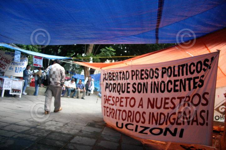 OAXACA, OAXACA, 04MARZO2009.- Líderes Magisteriales y de la Asamblea Popular de los pueblos de Oaxaca (APPO) iniciaron este día sus actividades de brigadeo rumbo al paro nacional que se llevara acabo en los próximos días. Al lugar se dieron cita, Azael Santiago Chepi secretario general de la sección 22 SNTE , el ex líder de la APPO Flavio Sosa Villavicencio, Emeterio Marino, obrero reprimido en los enfrentamientos del 2006 entre otros presos políticos FOTO: MAX NÚÑEZ/CUARTOSCURO.COM
