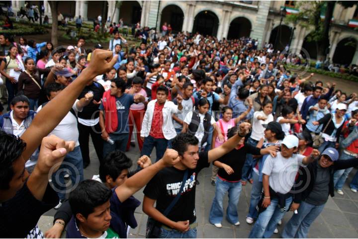 OAXACA, OAXACA, 08OCTUBRE2008.- Cerca de 500 jóvenes que se preparan para ser futuros maestros de la educación, provenientes de la zona de Tamazulapan del Progreso y Teposcolula en la región de la Mixteca, marcharon desde el Instituto Estatal de Educación Pública de Oaxaca (IEEPO) al zócalo de la ciudad como protesta por las políticas educativas federales. FOTO: MAX NÚÑEZ/CUARTOSCURO.COM