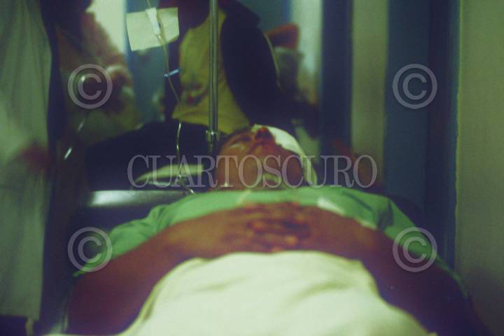 OAXACA, OAXACA, 14JUNIO2006.- Maestros de la Coordinadora Nacional de Trabajadores de la Educación durante el enfrentamiento con policías estatales en el desalojo que intentaron realizar las fuerzas del orden a el plantón que los profesores mantenían en centro de la ciudad. Daniel Bautista, estudiante del Instituto del Istmo es atendido por personal medico. FOTO: Saúl López/CUARTOSCURO.COM