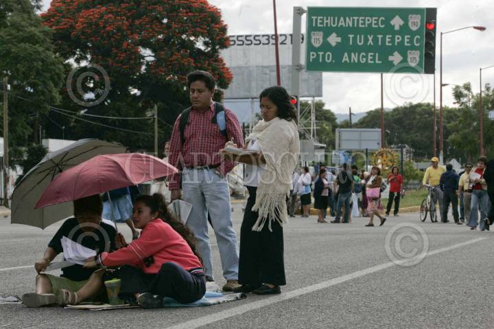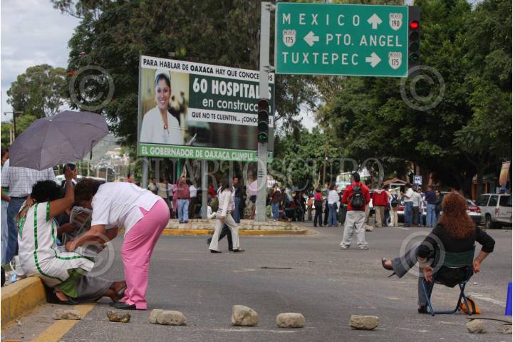 OAXACA, OAXACA, 09OCTUBRE2008.-Cerca de 60 trabajadores de la educación del área de administración, bloquearon estar tarde el crucero del monumento a Benito Juárez, que es la salida hacia las costas oaxaqueñas, para apoyar el movimiento magisterial vivido en Morelos. FOTO: MAX NÚÑEZ/CUARTOSCURO.COM