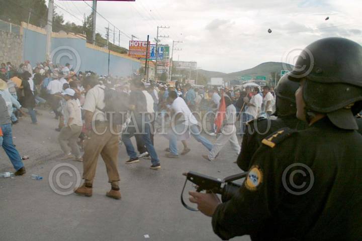 Chilpancingo, Guerreo, 09SEPTIEMBRE2004.- Aspectos del desalojo de maestros de la CETEG e integrantes de diversas organizaciones sociales por parte de elementos de la policía del estado y policía preventiva municipal. Los profesores bloquearon por más de 7 horas la autopista del sol para exigir al gobierno estatal y federal la solución a demandas, como el aumento salarial y créditos para viviendas. Foto: Oscar Alvarado/CUARTOSCURO.COM