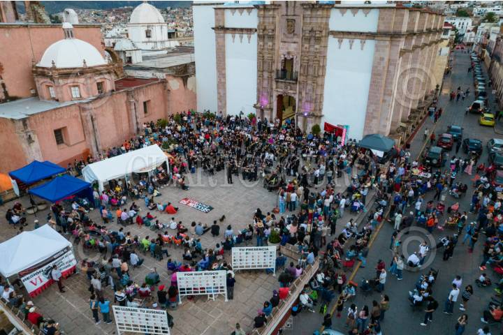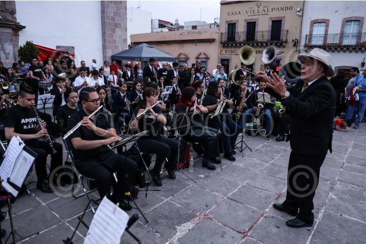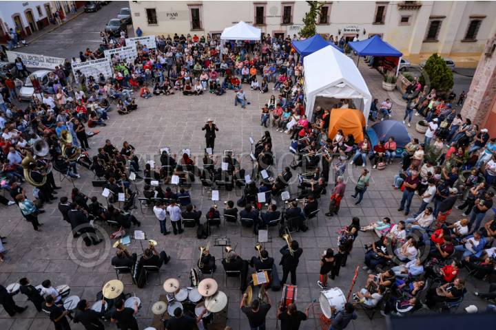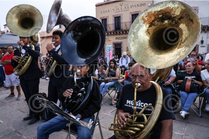 ZACATECAS, ZACATECAS, 05 JUNIO 2025.- El colectivo "Músicos Zacatecanos Unidos" realizó un concierto en la Explanada del Congreso del Estado en apoyo al plantón del magisterio de las secciones 34 y 58, quienes participan en la jornada nacional por la abrogación de la Ley del ISSSTE de 2007. FOTO: ADOLFO VLADIMIR / CUARTOSCURO.COMFOTO: ADOLFO VLADIMIR /CUARTOSCURO.COM