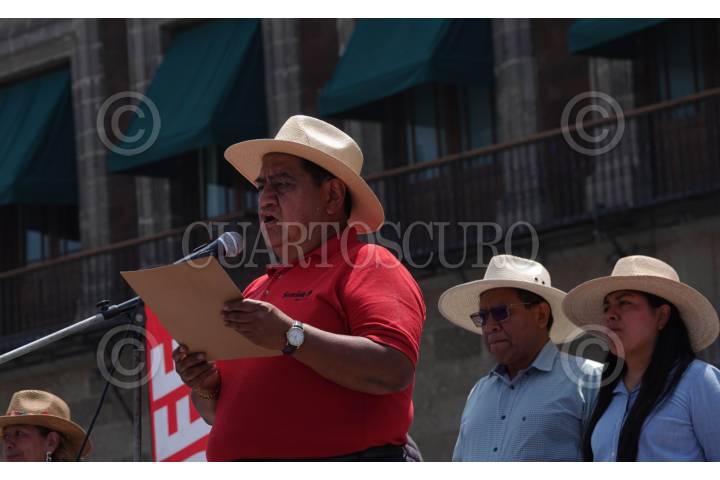 CIUDAD DE MEXICO, 07JUNIO025.- Pedro Hernández, secretario general de la Sección 9 de la CNTE, hace uso de la palabra durante la conferencia en la que se anunció que se levanta el plantón que docentes mantenían desde hace 24 días en las inmediaciones del Zócalo capitalino. Declararon que esto simplemente es un acto para reflexionar pero no hay ningún acuerdo con el gobierno federal respecto a las demandas.  FOTO: GALO CAÑAS/CUARTOSCURO.COM