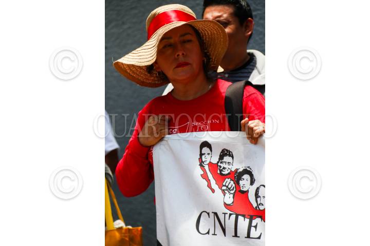 CIUDAD DE MÉXICO. 14JULIO2025.- Maestros integrantes de la CNTE, acompañaron a la comisión que se reuniría en la con autoridades de la SEP, y anunciaron nuevas protestas en la Capital. FOTO: VICTORIA VALTIERRA/CUARTOSCURO.COM