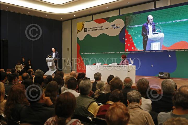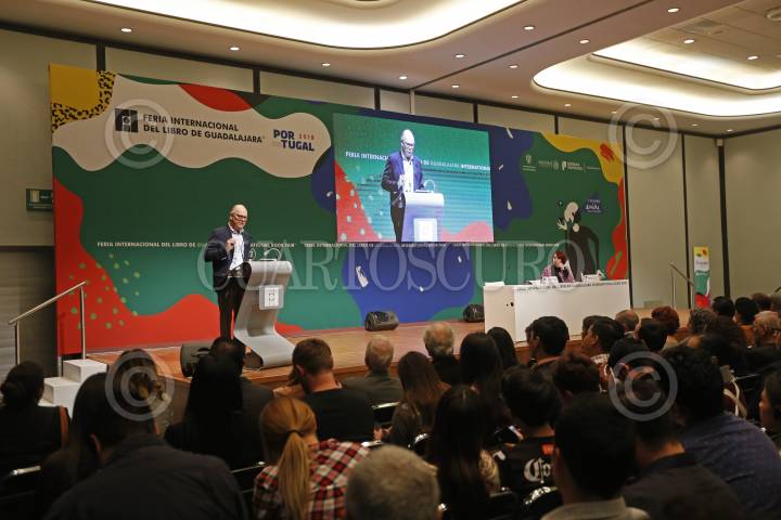 GUADALAJARA, JALISCO, 27NOVIEMBRE2018.- Homenaje a José Luis Martínez en conferencia magistral a cargo del escritor Mexicano Enrique Krauze , esto en el marco de la edición 32 de la Feria Internacional del Libro de Guadalajara (FIL), en la que Portugal es el invitado de honor y en evento que se llevo a cabo en la Expo. FOTO: FERNANDO CARRANZA GARCIA /CUARTOSCURO.COM