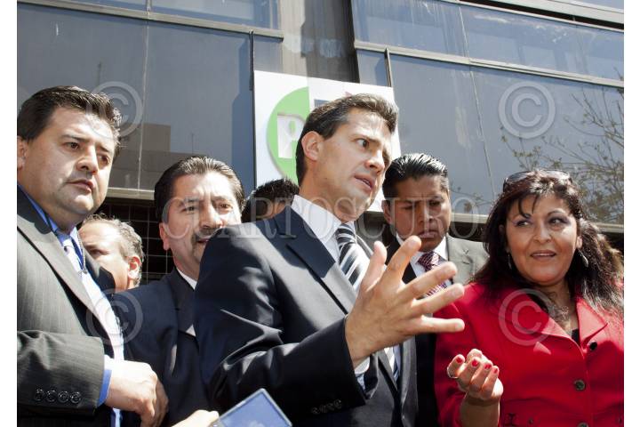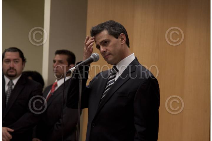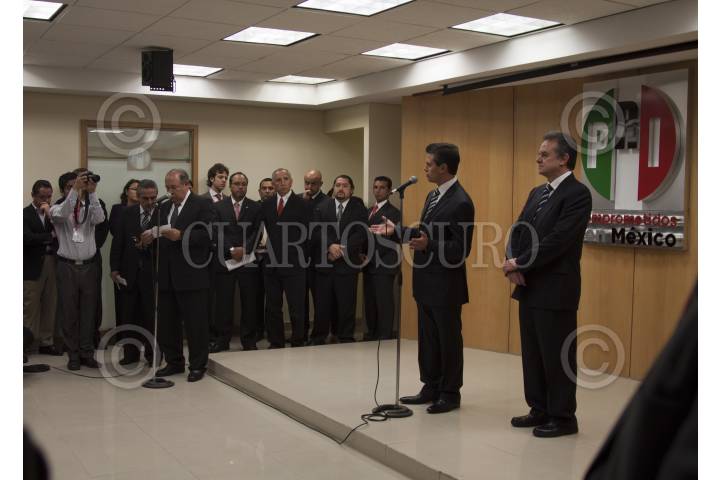 MÉXICO, D.F., 23MARZO2012.- Enrique Peña Nieto, candidato a la Presidencia de la República por el PRI, en conferencia de prensa minutos después de la ceremonia realizada en las instalaciones del partido con motivo del 18 aniversario luctuoso de Luis Donaldo Colosio. FOTO: FRANCISCO RODRIGUEZ /CUARTOSCURO.COM