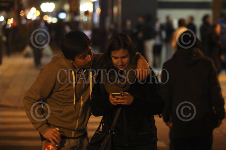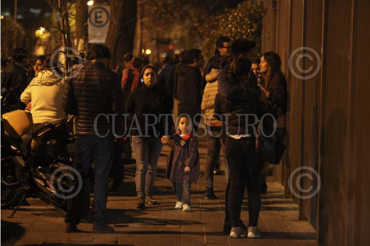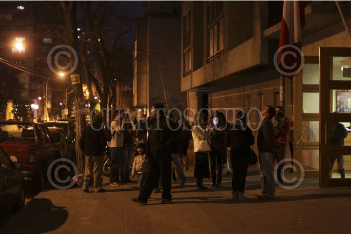 SANTIAGO, CHILE., 16SEPTIEMBRE2015.- Habitantes salieron a las calles para resguardarse del sismo que sacudió la zona central del país. El Servicio Geológico de Estados Unidos indicó que el terremoto tuvo una magnitud de 8,3. Sin embargo las autoridades sismológicas chilenas indican que fue de 8,0. Una alerta de tsunami se decretó para todo el borde costero del país tras el sismo, que según medios locales se sintió a las 19.55, hora local. FOTO: FÉLIX MÁRQUEZ /CUARTOSCURO.COM