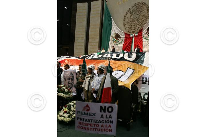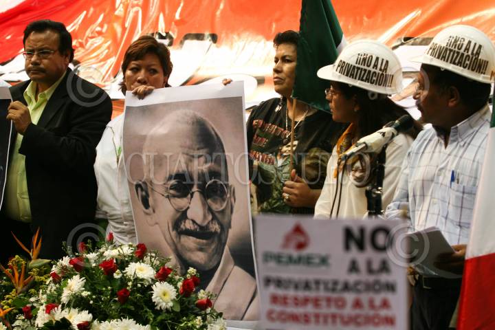 MÉXICO D.F. 18ABRIL2008.-Diputados pertenecientes al Frente Amplio de Progresista y que mantienen tomada la tribuna, rindieron un homenaje al ex-presidente de la India Mahatma Gandhi en el salón de plenos de la Cámara de Diputados. FOTO: GUILLERMO PEREA /CUARTOSCURO.COM
